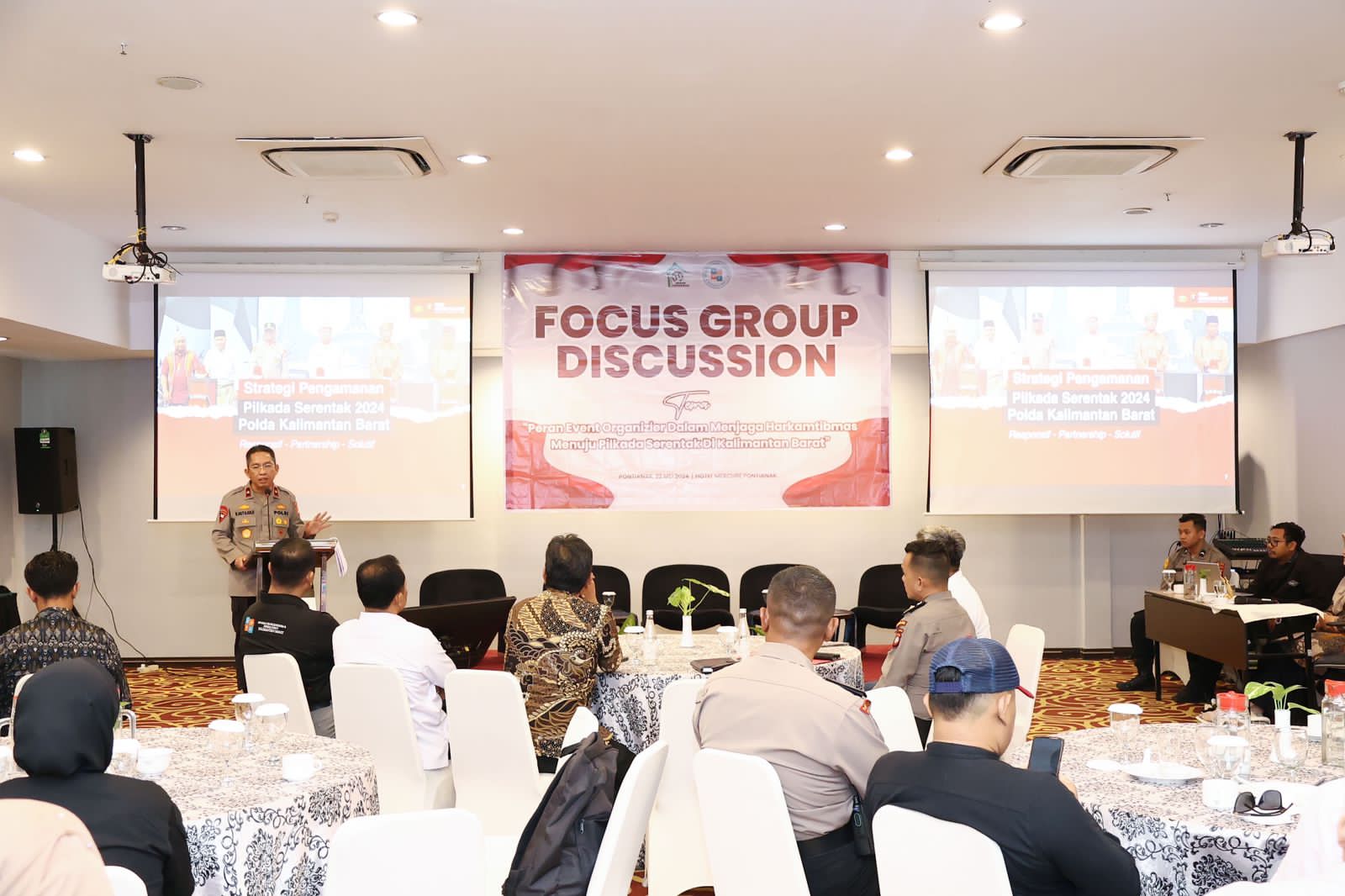 Hal ini disampaikan oleh Wakapolda Kalimantan Barat Brigjen Pol Roma Hutajulu usai memberikan sambutan dalam kegiatan Focus Group Discussion(FGD) dengan tema “Peran Event Organizer Dalam Menjaga Harkamtibmas Menuju Pilkada Serentak di Kalimantan Barat” pada Rabu (22/05/2024).
