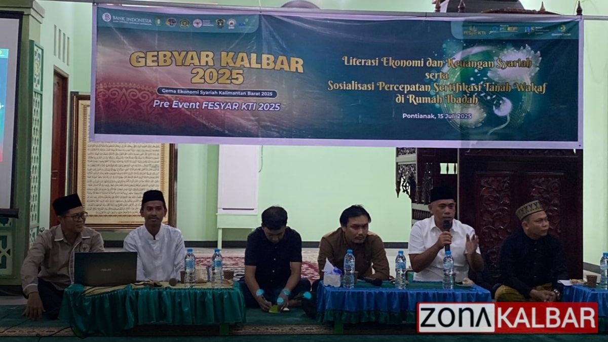PONTIANAK, ZONAKALBAR.COM – Bank Indonesia (BI) dan Badan Wakaf Indonesia (BWI) Kota Pontianak berkolaborasi menyelenggarakan kegiatan literasi ekonomi dan keuangan syariah serta sosialisasi percepatan sertifikasi tanah wakaf. Acara yang merupakan bagian dari Pre Event Festival Ekonomi Syariah (FESYAR) Kawasan Timur Indonesia (KTI) 2025 dan Gebyar Kalbar 2025 ini berlangsung di Masjid Arrafi’ul A’laa, Perumnas III, Kecamatan Pontianak Timur, pada Selasa malam (15/7/2025).