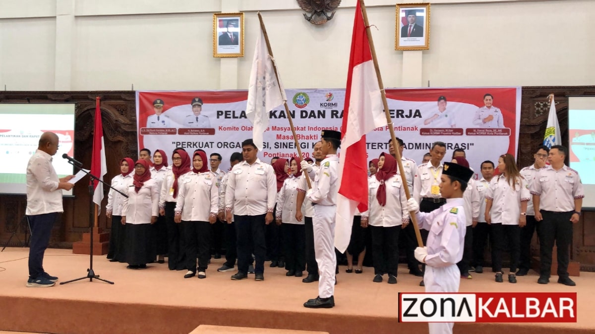 PONTIANAK, ZONAKALBAR.COM – Pengurus Komite Olahraga Masyarakat Indonesia (KORMI) Kota Pontianak periode 2025-2029 secara resmi telah dilantik oleh Ketua KORMI Provinsi Kalimantan Barat Bapak Harisson yang juga menjabat sebagai Sekda Kalimantan Barat (Kalbar) disaksikan oleh Wali Kota Pontianak Edi Rusdi Kamtono, di Aula Rumah Dinas Wali Kota Pontianak, Sabtu (20/9/2025). Pelantikan ini sekaligus dirangkai dengan Rapat Kerja (Raker) KORMI Kota Pontianak mengangkat tema “Perkuat Organisasi, Sinergi Kerja dan Tertib Administrasi”.